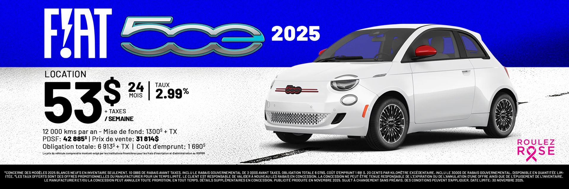 Fiat est la marque par excellence pour ceux qui recherchent un mélange unique de style européen et d'efficacité. Parfaits pour la vie urbaine à Québec, nos modèles Fiat allient esthétique et fonctionnalité.