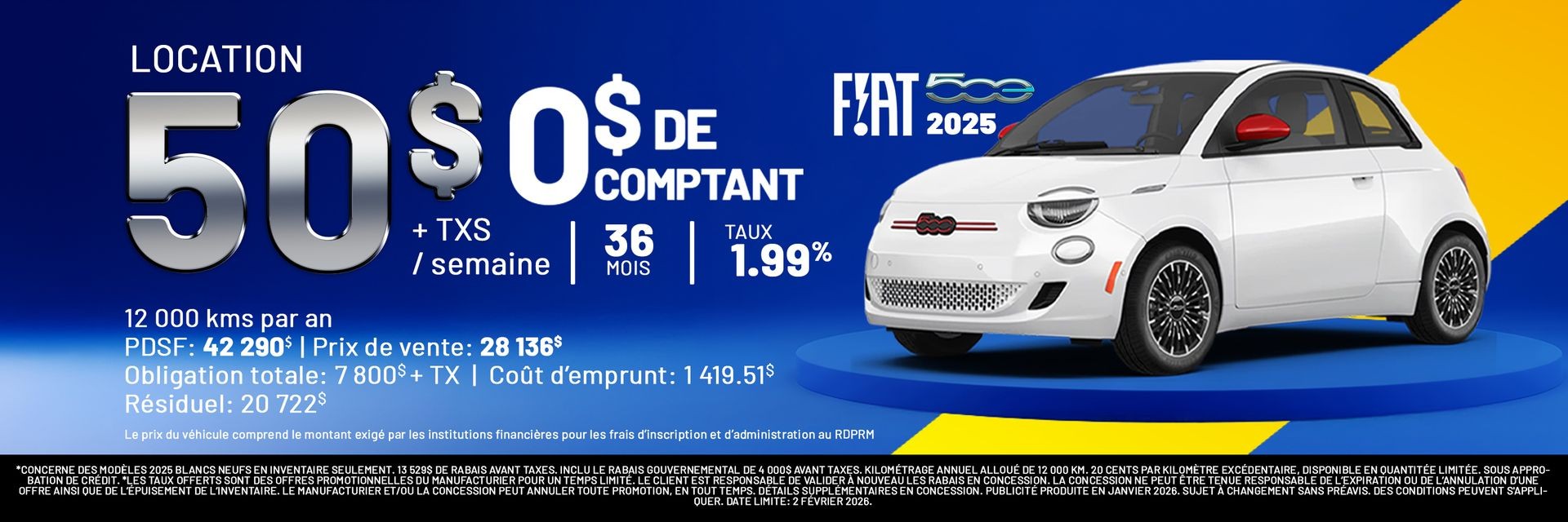 Fiat is the brand par excellence for those seeking a unique blend of European style and efficiency. Perfect for urban life in Québec, our Fiat models combine aesthetics and functionality.